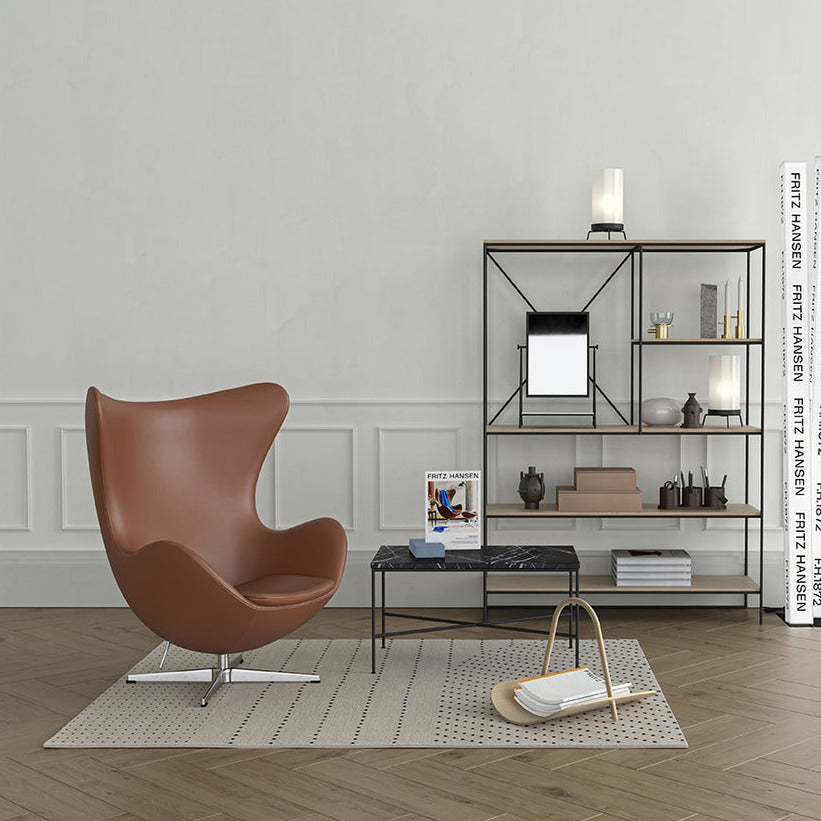 A practical alternative to a traditional newspaper rack, this wooden basket can hold everything from magazines to knitting projects. It is easy to move and is in keeping with Fritz Hansen’s tradition of working with steam bent wood and fine veneer.