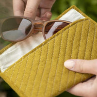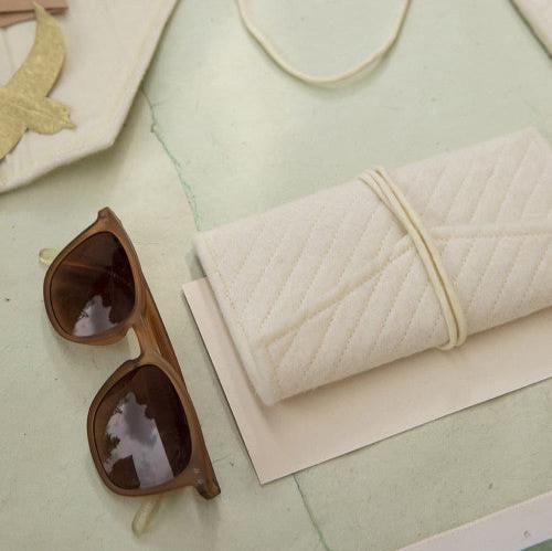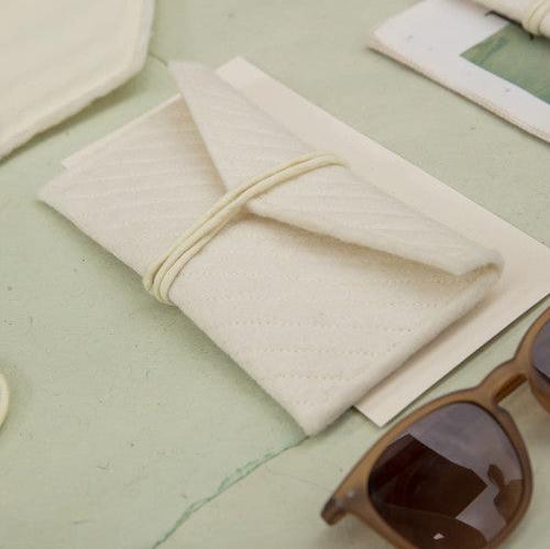 Lined with ecru cotton and enhanced with a cord to close it, this delicate case protects your frames from bumps and bruises, and lets you transport them without worry. Easy to slip into your bag, with the discrete and elegant shape of an envelope, you’ll be wondering how you got so far through life without it!