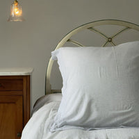 White with light grey pinstripe hand woven in South India on 100% cotton. Very soft and very light. Sold individually in Twin, Queen/Full and King. Fill Sold Separately.