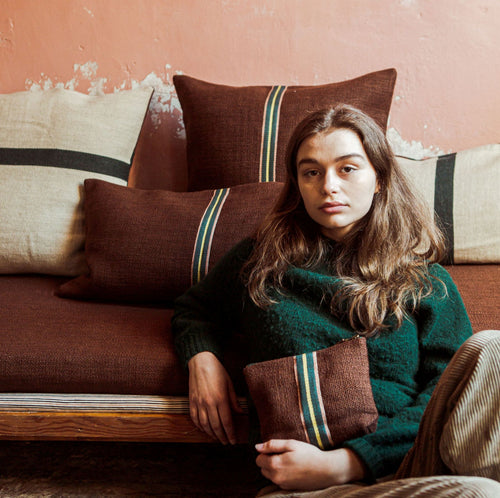Korn is a flatwoven rug in a broken twill pattern, designed by Cecilie Manz as part of the Landskab collection. It uses a unique wavy-effect yarn with threads of wool and linen running parallel. Developed specially for this collection to achieve a particular texture, this new yarn highlights the natural beauty of linen on the rug’s surface, resulting in a lustrous finish that elevates its depth and overall appeal.