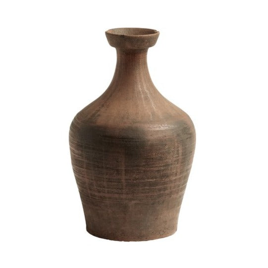 The bottles originate from China and are between 100 and 200 years old, where they were originally used to carry rice wine. Clay types, warm golden colors, shapes, and sizes of the bottles will vary, no two are alike. Small chip around the edge can also occur, this is not a fail but a charm.