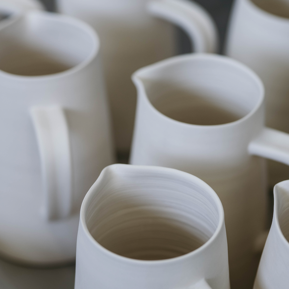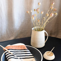Wheel thrown jug with handle, simple and natural, useful for many purposes. Made on a pottery wheel. Each piece might vary up to 10% different in size, due to hand work involved. Tested and adapted to extremely hot and cold temperatures, where quality comes first. Suitable for: dishwashers, microwaves, ovens, freezers and food steamers.