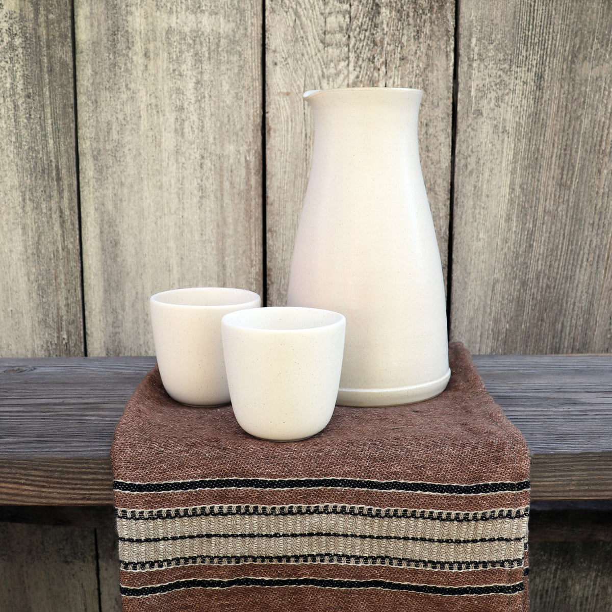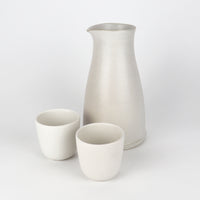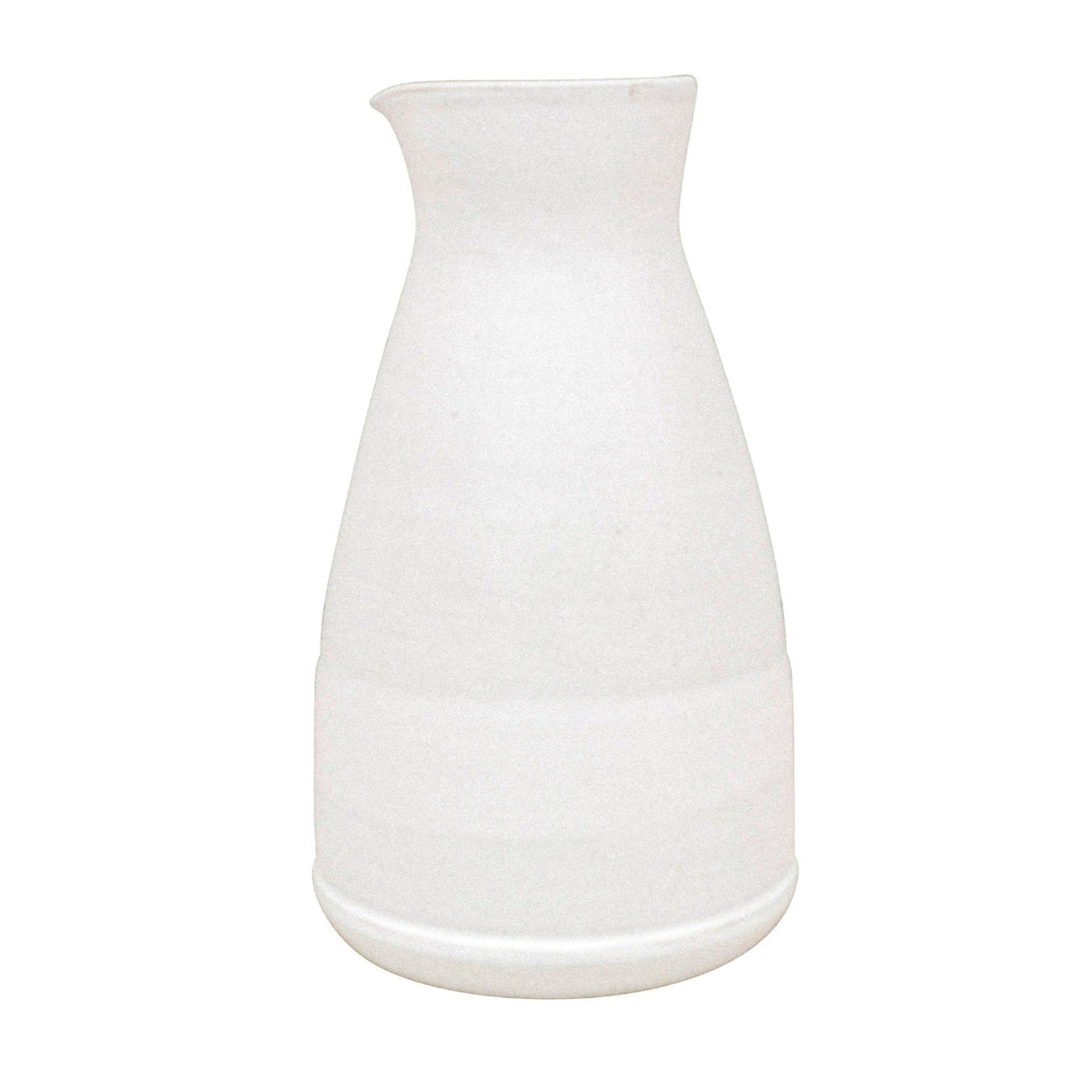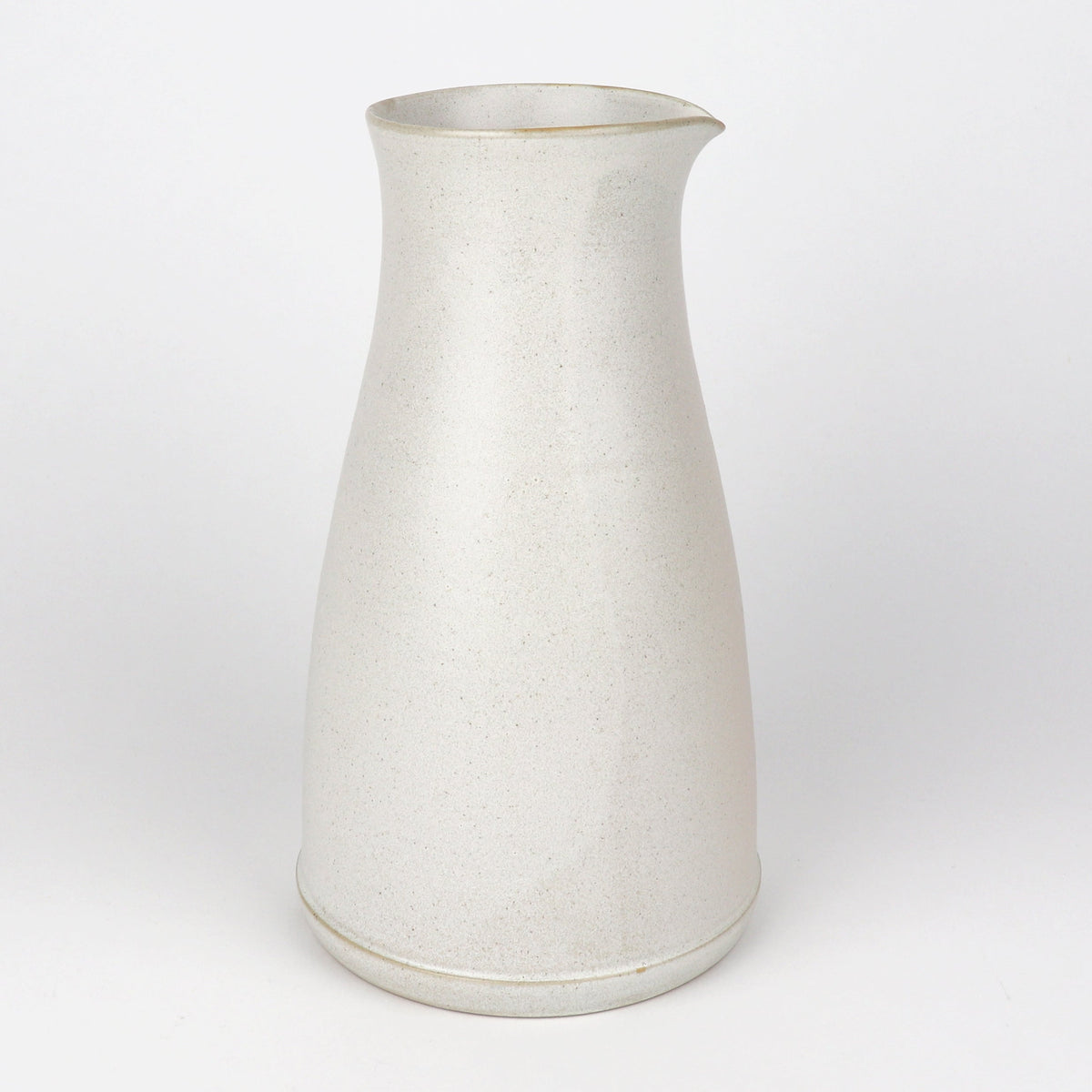 Wheel thrown jug, simple and natural, useful for many purposes. White matte color with extra dark and small spots all around the shape.