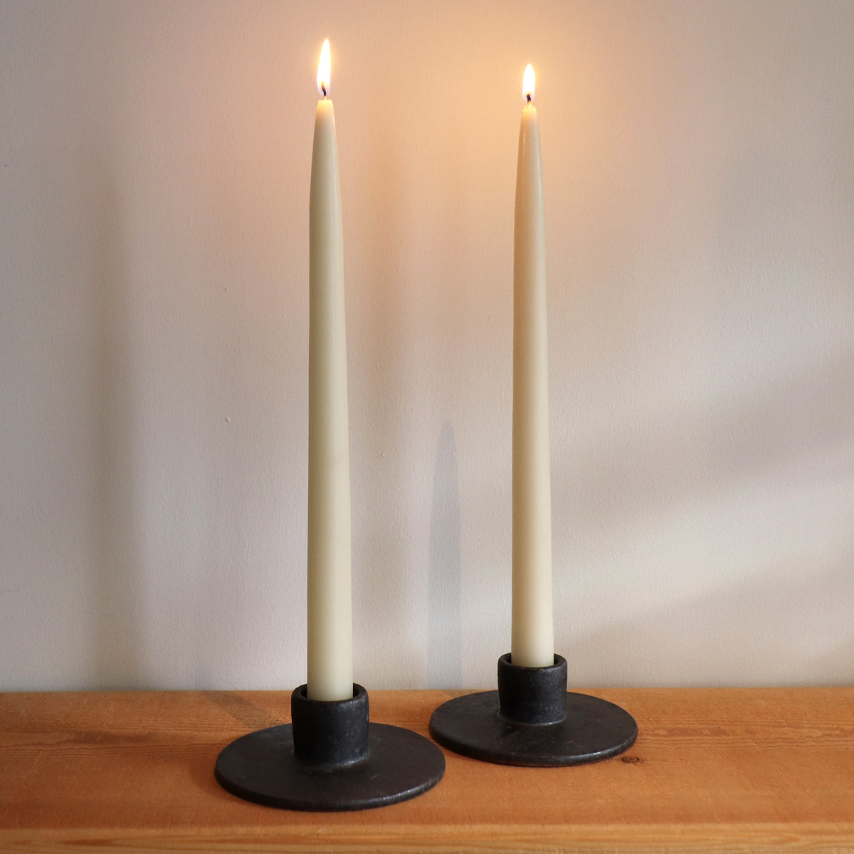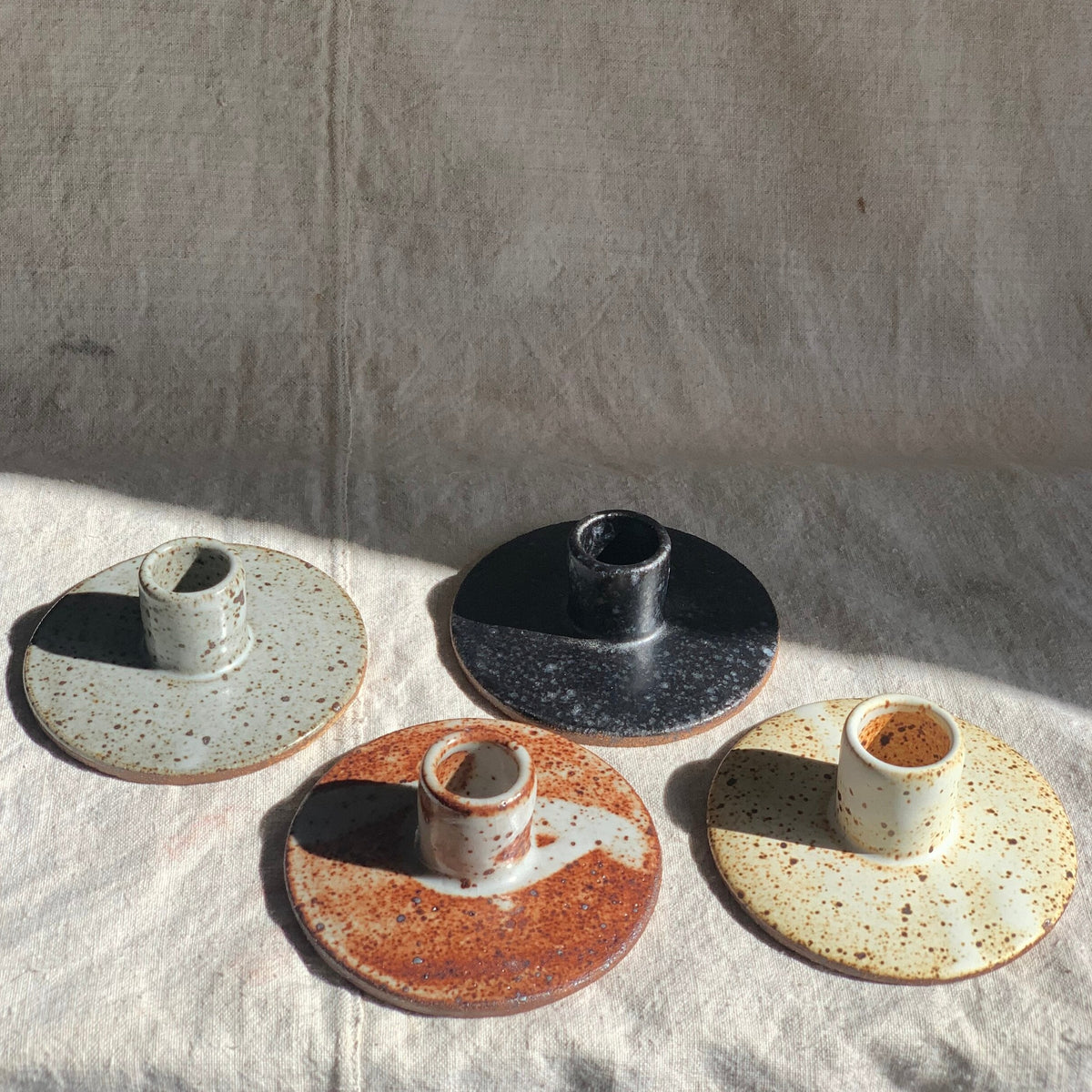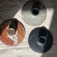 Stoneware taper candle holder in Rust, Matte black, Dove grey or Eggshell, subtle drama for dark times.