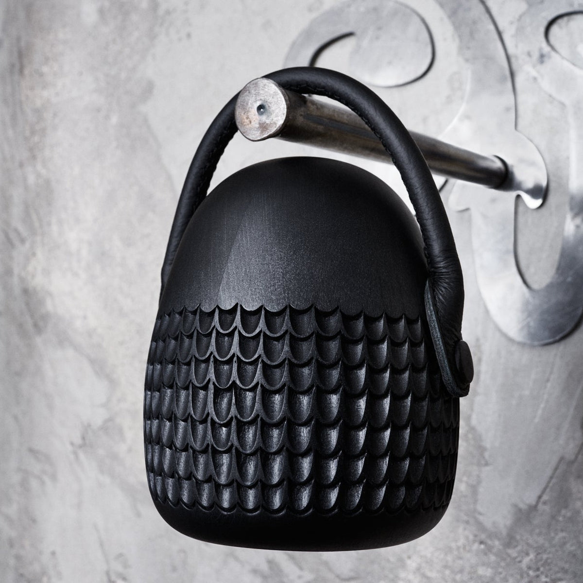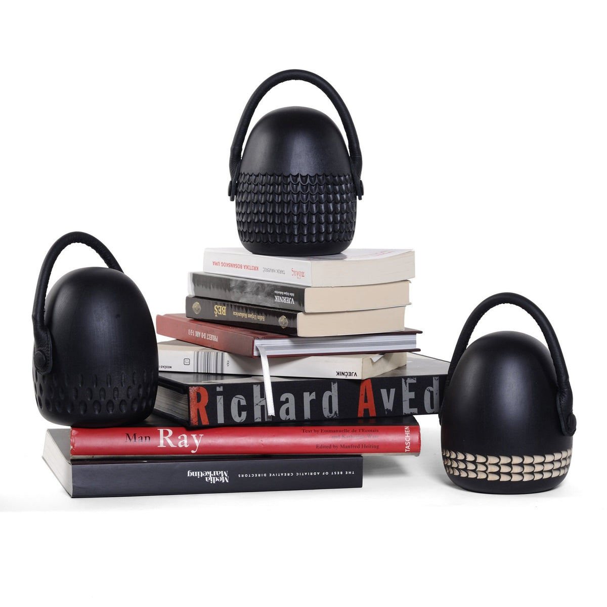 Features: Solid Wood Black Stained Maple with Carving Options. Includes Black leather wrapped handle for easy transport.